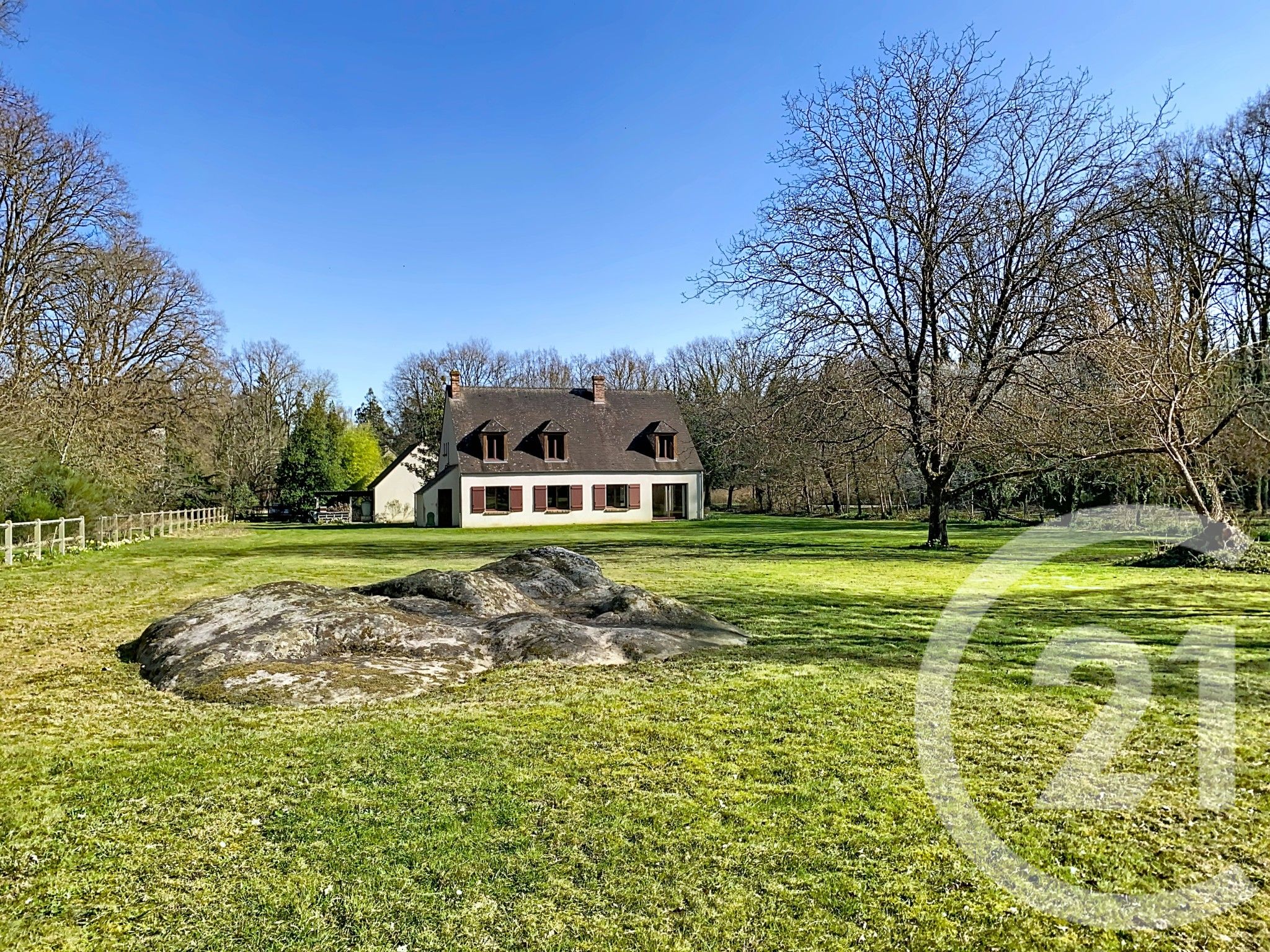 Le jardin agréablement arboré (agrémenté de quelques arbres fruitiers : noyer, figuier) vous offre une vue dégagée et est jalonné de rochers de la forêt de Fontainebleau, un cadre exceptionnel à partager avec chevreuils, biches, cerfs et autres mammifères sauvages...